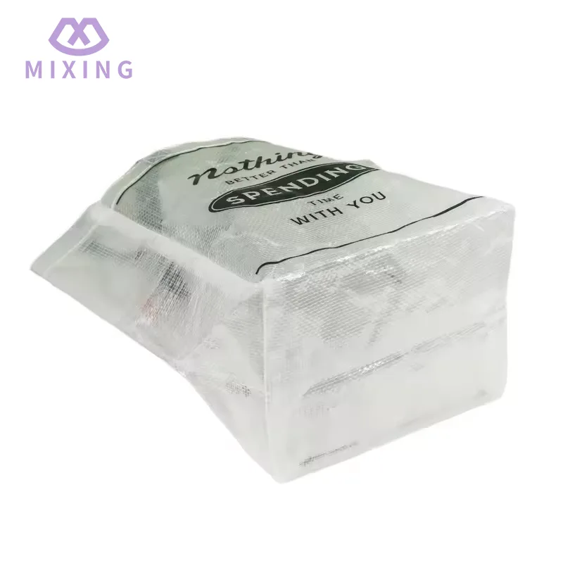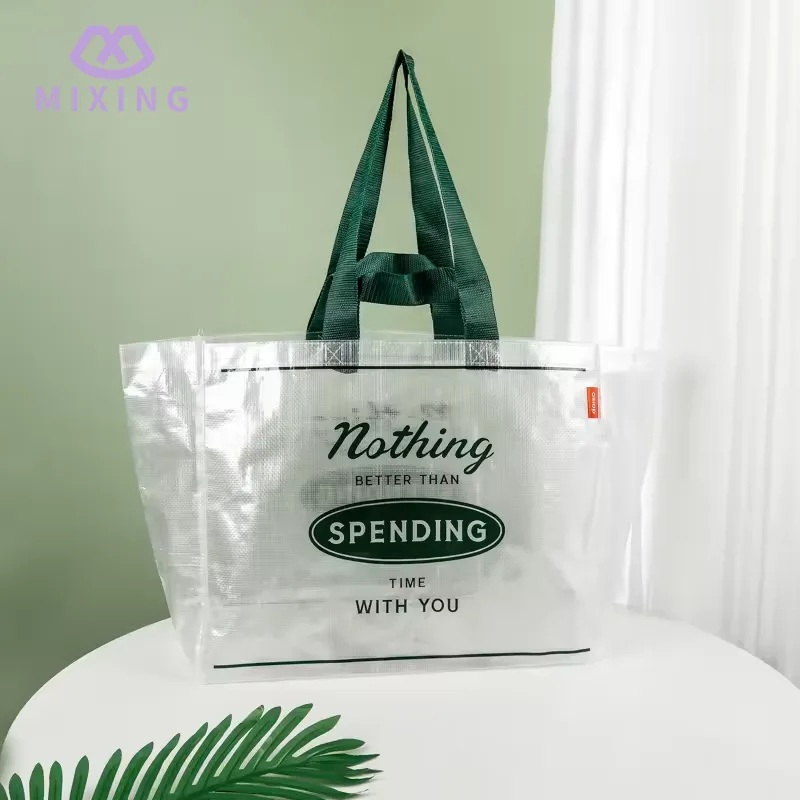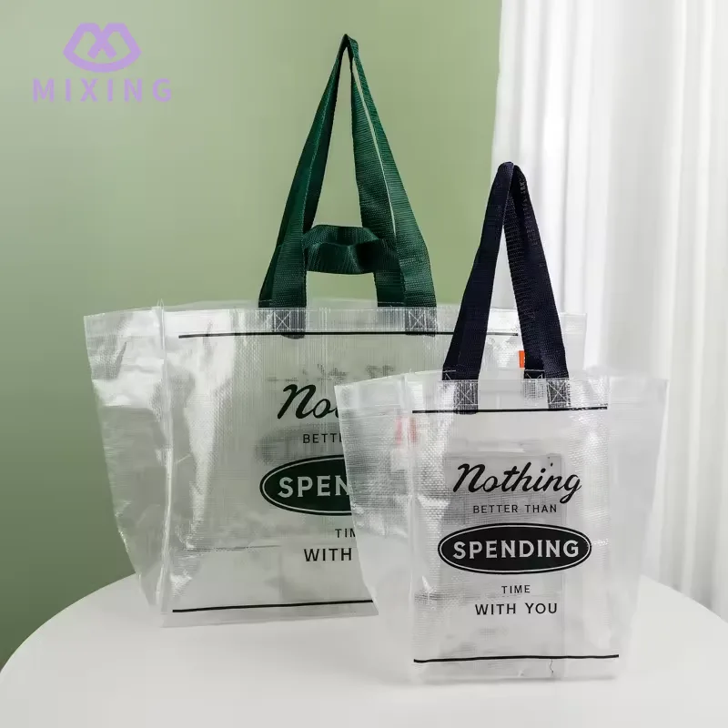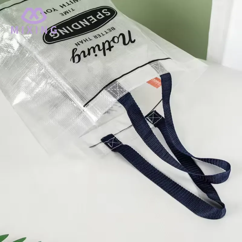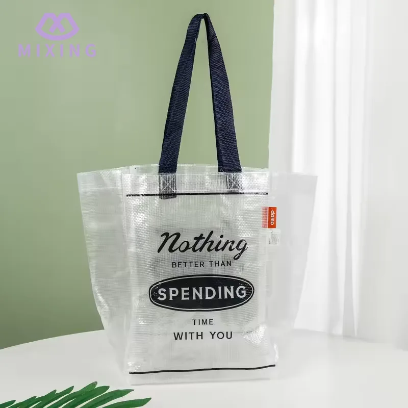Het transparante ontwerp van de doorzichtige PP geweven draagtas zorgt voor gemak bij dagelijks gebruik, wanneer het nodig is om toegang te krijgen tot de items in de tas, hoeft u niet herhaaldelijk te snuffelen. Door het transparante materiaal is de locatie van de artikelen direct zichtbaar, wat tijd kan besparen en de efficiëntie kan verbeteren.