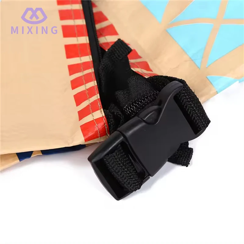 Wanneer de Mixing's China multifunctionele PP geweven strandmat strandtas niet open is, is deze een nette strandtas waarin gemakkelijk essentiële spullen voor het strand kunnen worden opgeborgen, zoals zwemkleding, handdoeken, zonnebrandcrème en zonnebrillen, en heeft kleine vakken. Het is prima om kleine spullen zoals mobiele telefoons en sleutels vast te houden, je hoeft ze niet te combineren met natte handdoeken of zwemkleding, en het voorkomt ook dat ze per ongeluk verdwalen in het zand.