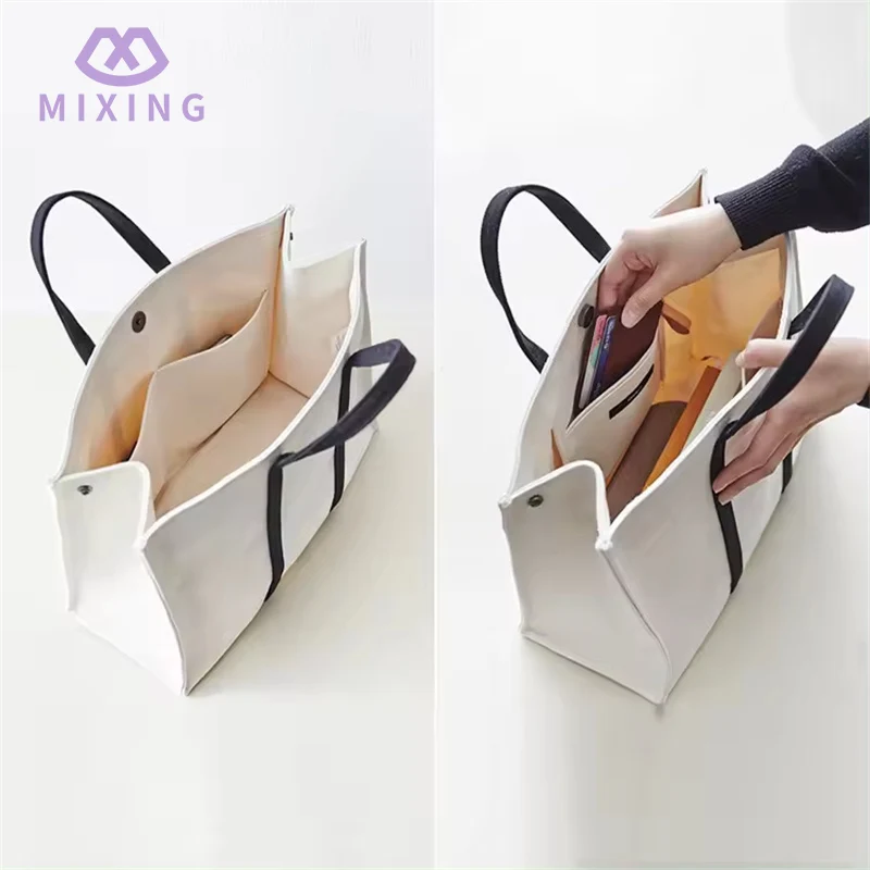 Het canvasmateriaal dat wordt gebruikt in de gewone canvas draagtas met handvatten, geproduceerd door de Mixing-leverancier, voelt dik maar niet omslachtig aan. In tegenstelling tot sommige dunne canvas tassen die zacht en slap zijn, kan het een zekere mate van stijfheid behouden na het vullen van dingen, zal het de spullen niet vervormen onder druk en ziet het er regelmatiger uit.