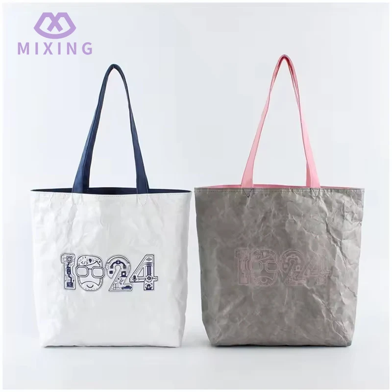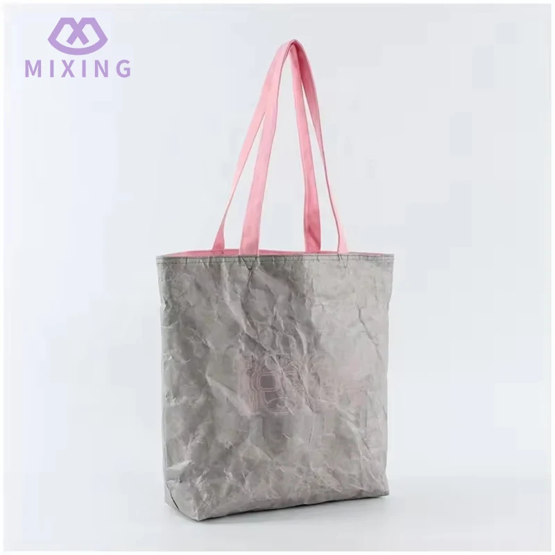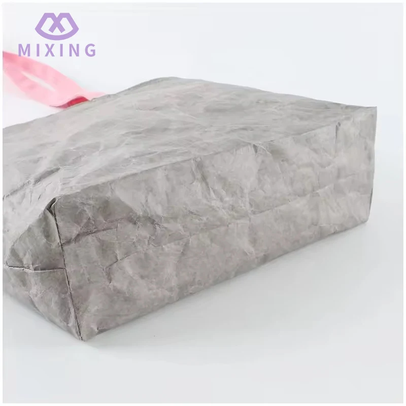 Qua materiaal zijn Tyvek Tote Bags gemaakt van DuPont-papier, wat een beetje stijf is. Bij aanraking voelt het een beetje aan als dik en veerkrachtig karton, maar het is zachter dan karton. Als je erin knijpt, veert het terug zonder plooien achter te laten. Bij het dragen van spullen kan het taslichaam omhoog worden gestrekt. Het is niet het soort dat zacht aanvoelt en aan de hand blijft plakken zodra het gevuld is met boeken; het ziet er netjes uit en heeft een goede textuur als het in de hand wordt gehouden, en ziet er niet goedkoop uit.